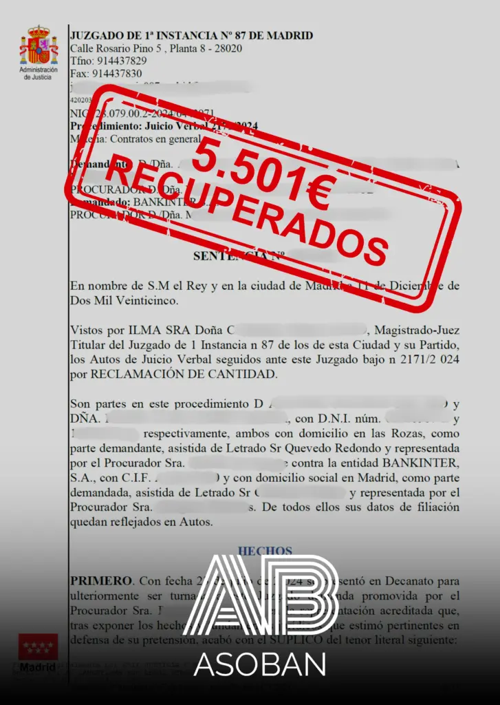 Obligamos a Bankinter a reintegrar 5.501€ a nuestro cliente por negligencia en la custodia de fondos