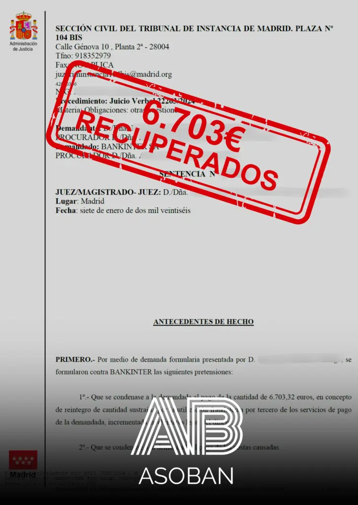 Sentencia firme contra Bankinter: el juez obliga a devolver 6.703€ sustraídos mediante Phishing